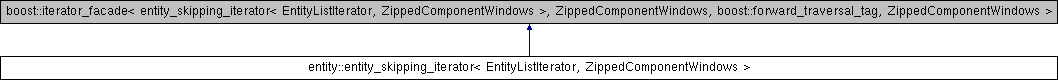 Inheritance diagram for entity::entity_skipping_iterator< EntityListIterator, ZippedComponentWindows >:Friends | |
